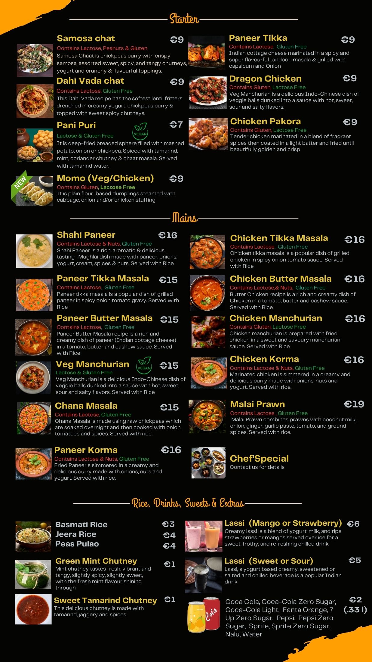 Our menu is a testament to our dedication to diversity and quality. Featuring a fixed dinner menu for daily indulgence, we also introduce the Chief’s special on selected days, bringing a surprise element to your dining routine. Understanding the essence of Indian cuisine, we also cater to your special occasions with a customized menu, turning your celebrations into memorable feasts.