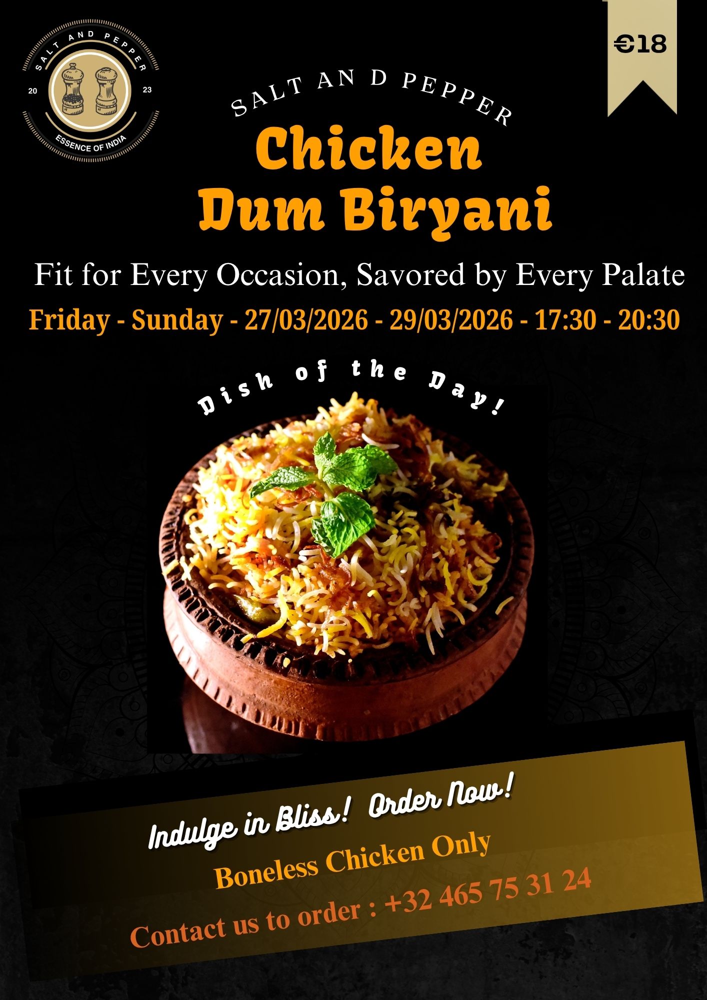 Every day at Salt and Pepper, we embark on a gastronomic journey that promises to tantalize your taste buds. Our Menu of the Day section showcases a rotating selection of dishes that epitomize the richness and diversity of Indian cuisine. Handpicked by our chef to offer you a unique dining experience each day, these specials are a testament to our commitment to freshness, quality, and innovation.